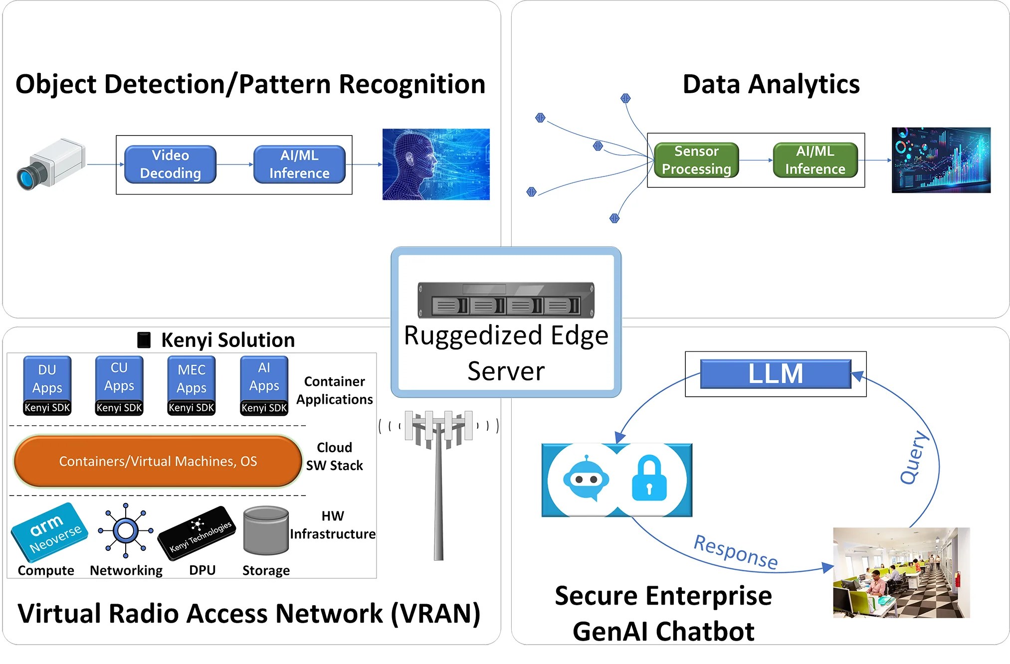 Kenyi Technologies is developing an Edge Infrastructure compute platform that addresses these constraints, enabling the use of well accepted and open cloud native SW stacks with appliance like efficiency in terms of cost, power and space.